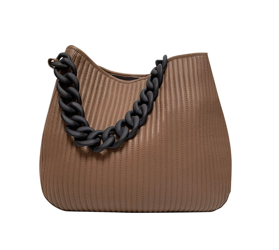 Réalisée en cuir d’agneau matelassé de grande qualité, la besace Roberta allie élégance et savoir-faire artisanal. Une chaîne en résine noire, légère permet de porter le sac à la main ou à l'épaule